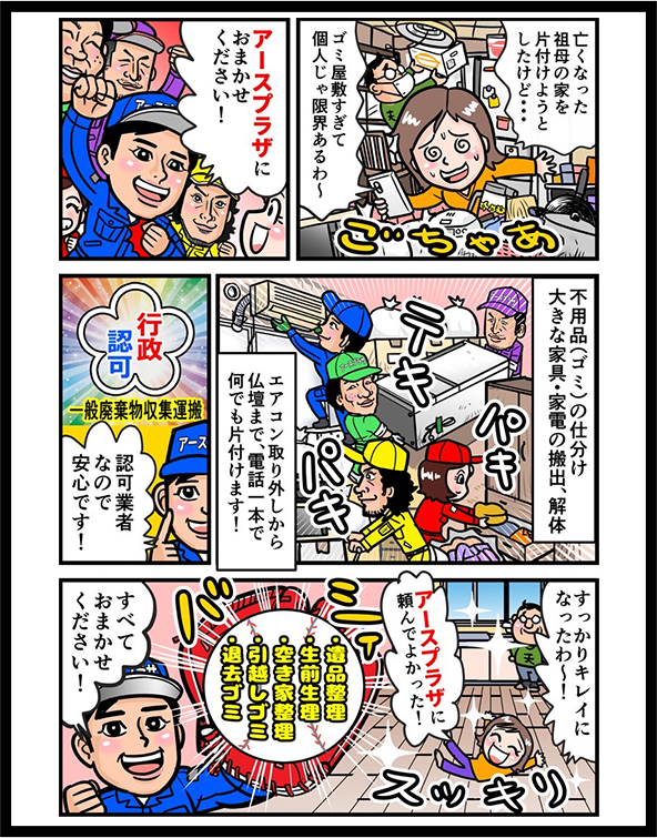 • 圧倒的な対応力×安心の定額制 不用品・粗大ゴミの片付けなら 創業9年目 不用品回収のエキスパート リサイクル戦隊アースプラザ おそおうじ本舗と業務提携!